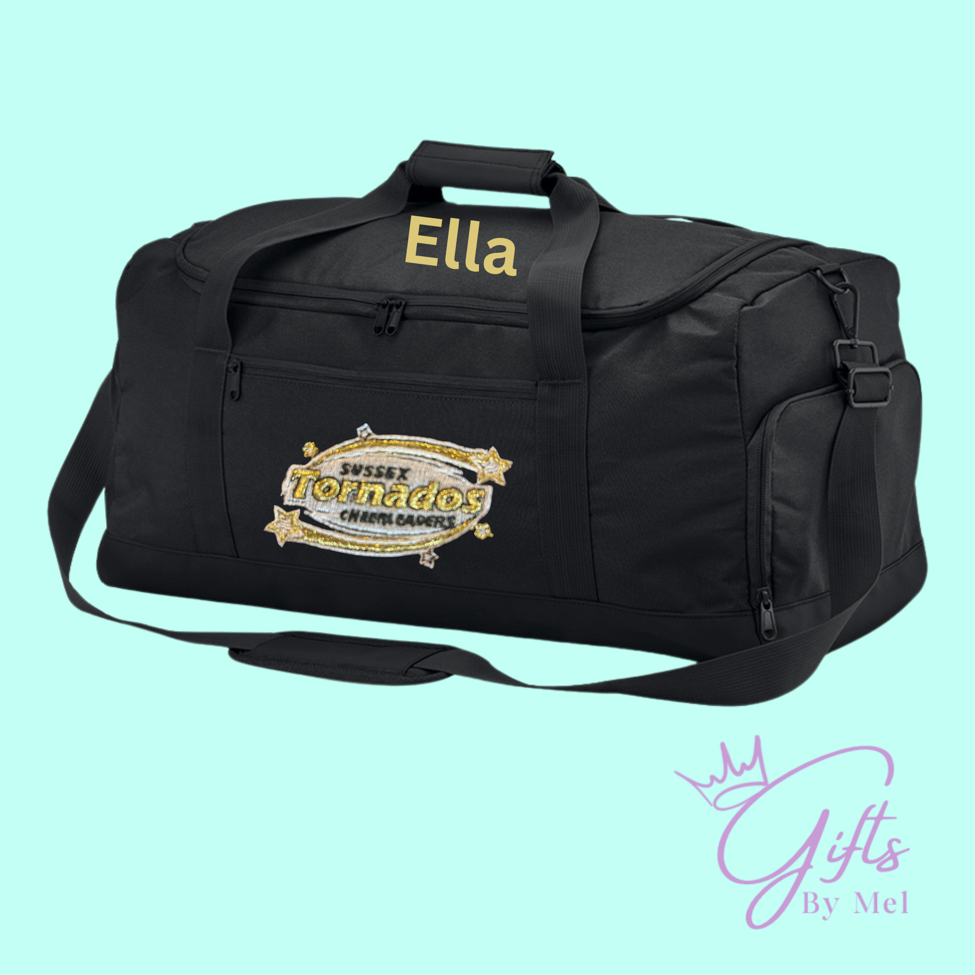 Personalised Large Tornados Black Training Bag – 35L Cheer Edition